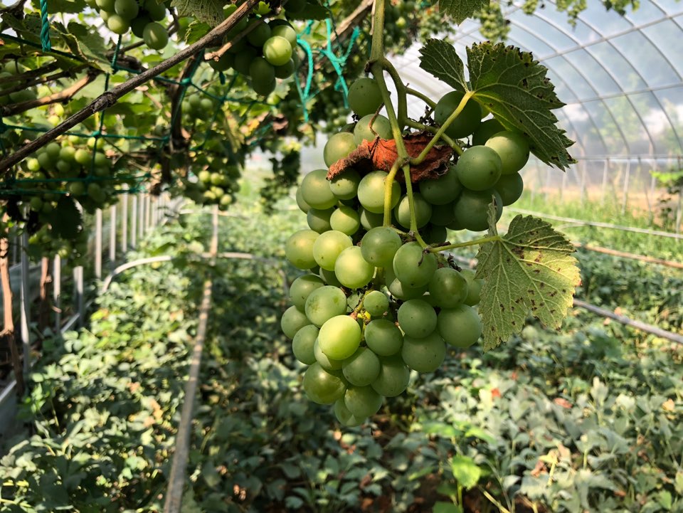 일반 포도들은 벌써 까맣게 익어 출하된 상태인데, 이 포도는 아직까지 파랗다.