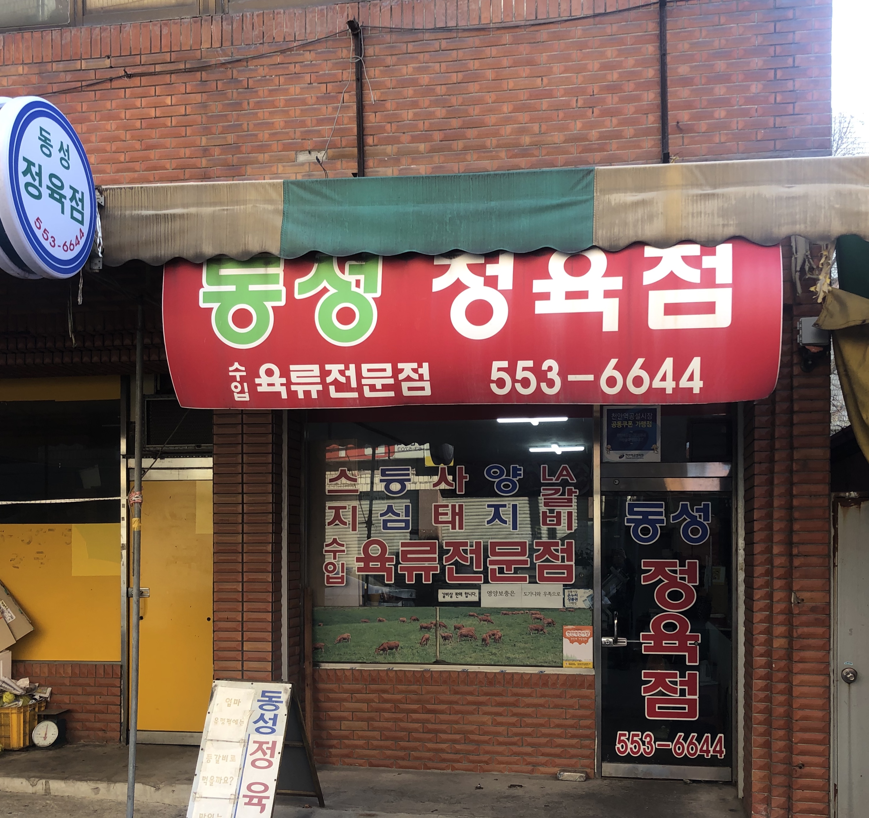 천안역전시장에서 볼 수 있는 동성정육점의 점포 모습.