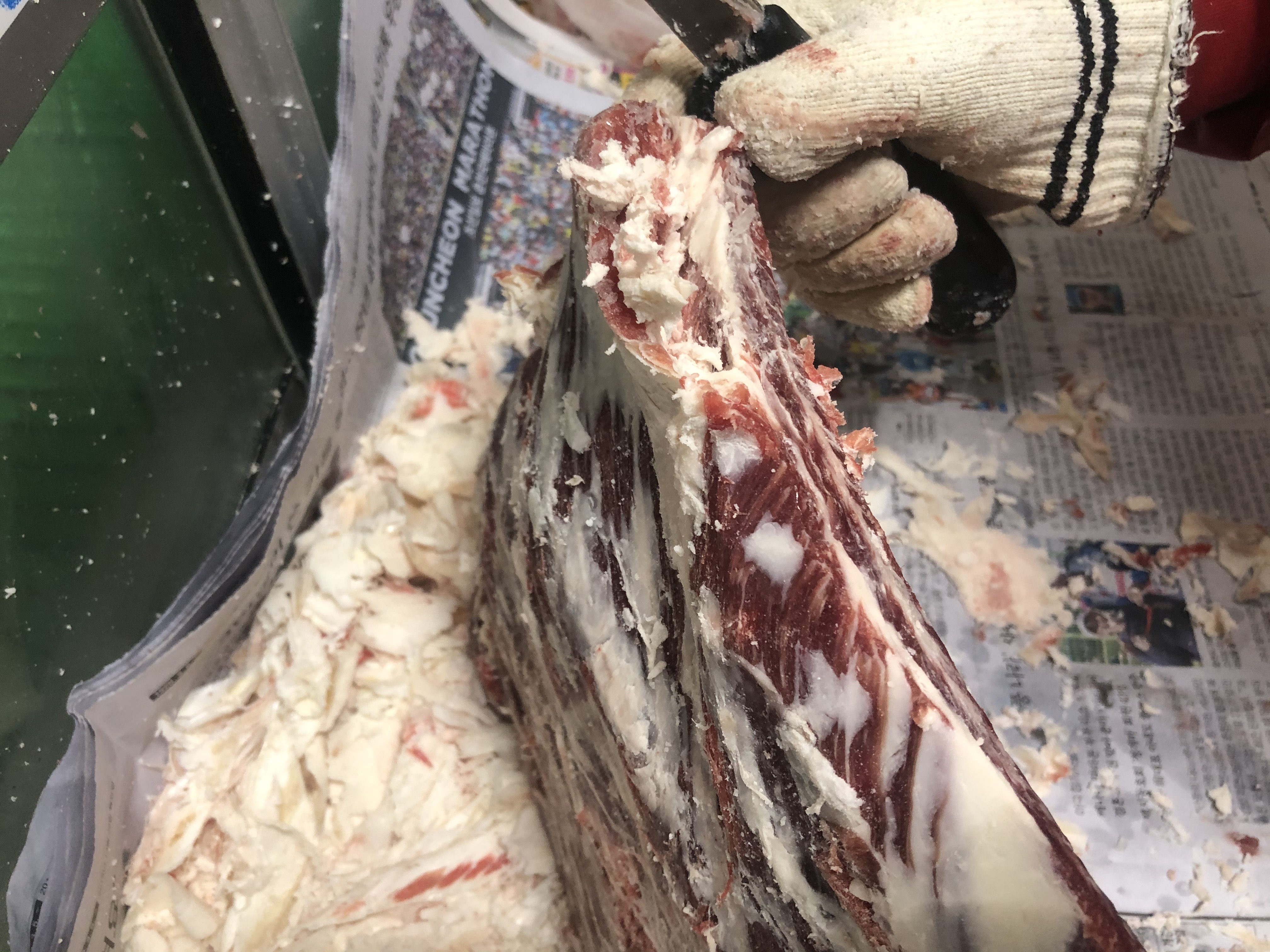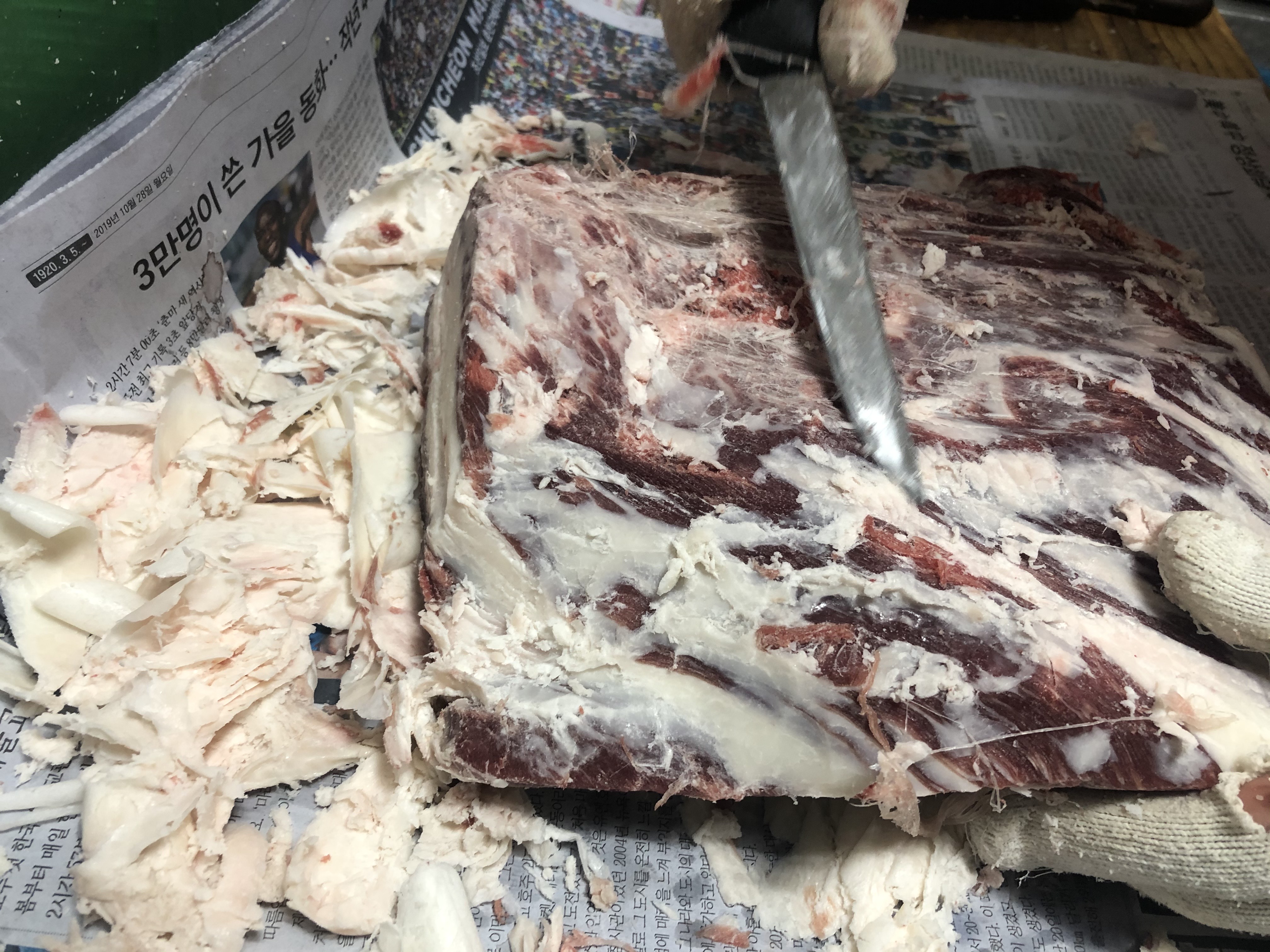 소고기 비계가 어떤 것인지를 알게 되었다. 표면과 중간 사이사이에 비계를 손질해야,