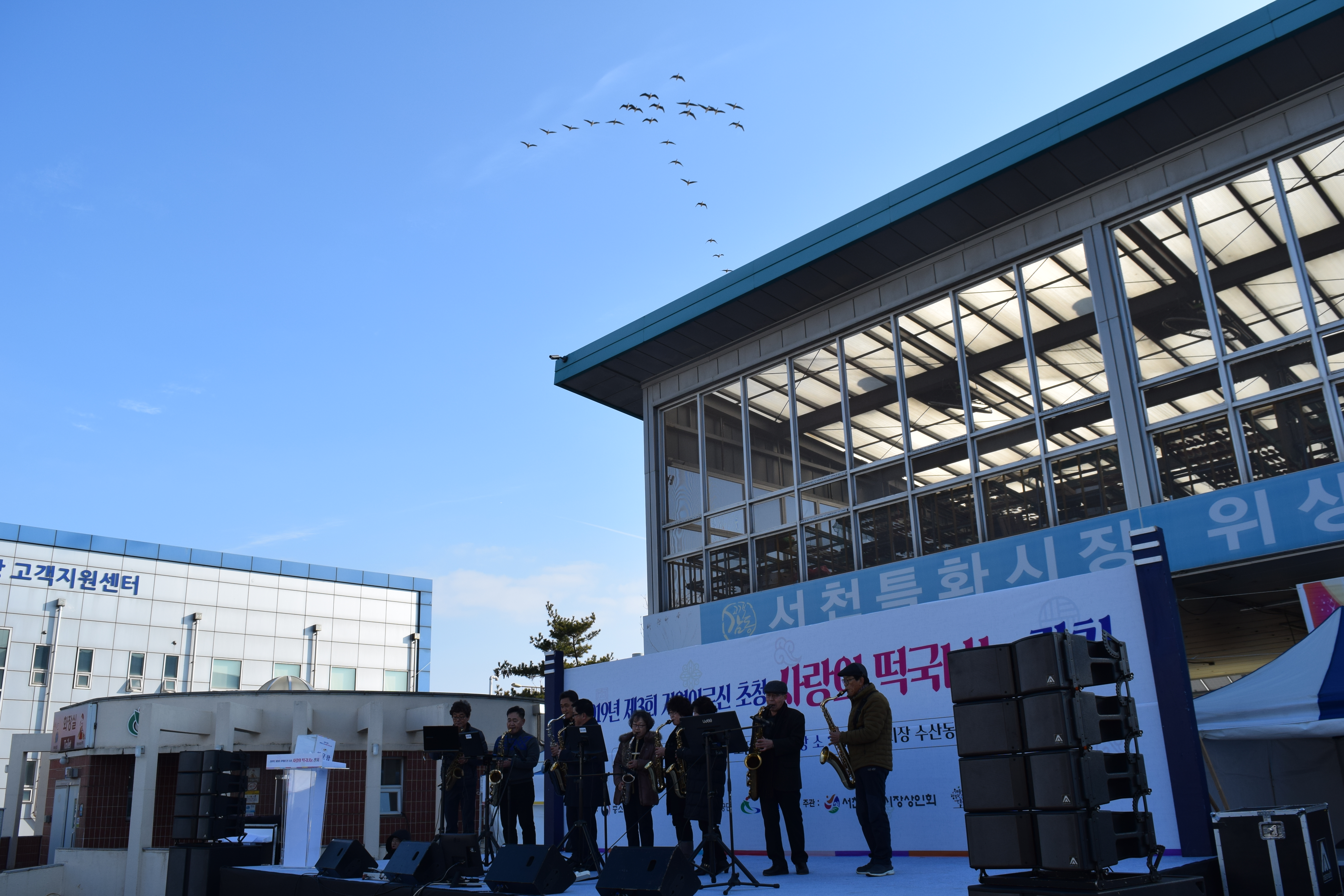 색소폰합주단이 발표할 때는 기러기들이 구경하러 왔다 가네요. ㅎㅎ