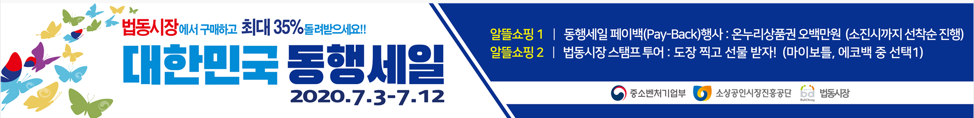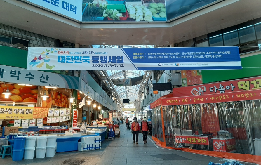 양차승 법동시장상인회장은 “이번에 동행세일을 준비하면서 코로나19 방역을 철저히 했고, 행사기간 중에도 방역을 계속된다. 시장을 찾는 고객들에게 1인당 마스크 3장씩 지급해 고객들이 걱정 없이 시장에 오시도록 만전을 기했다”고 밝혔습니다. 이번 법동시장의 대한민국 동행세일은 7월12일까지 진행됩니다.