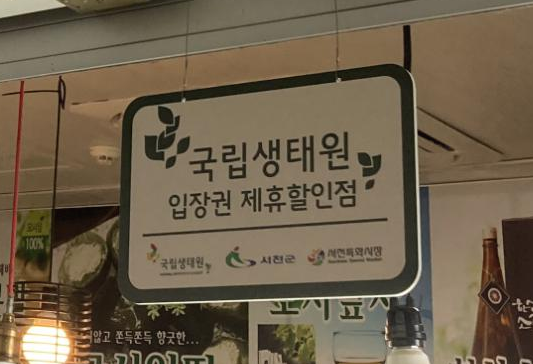 국립생태원 제휴 점포에는 위 사진처럼 국립생태원 입장권 제휴할인점 표시가 되어 있습니다.