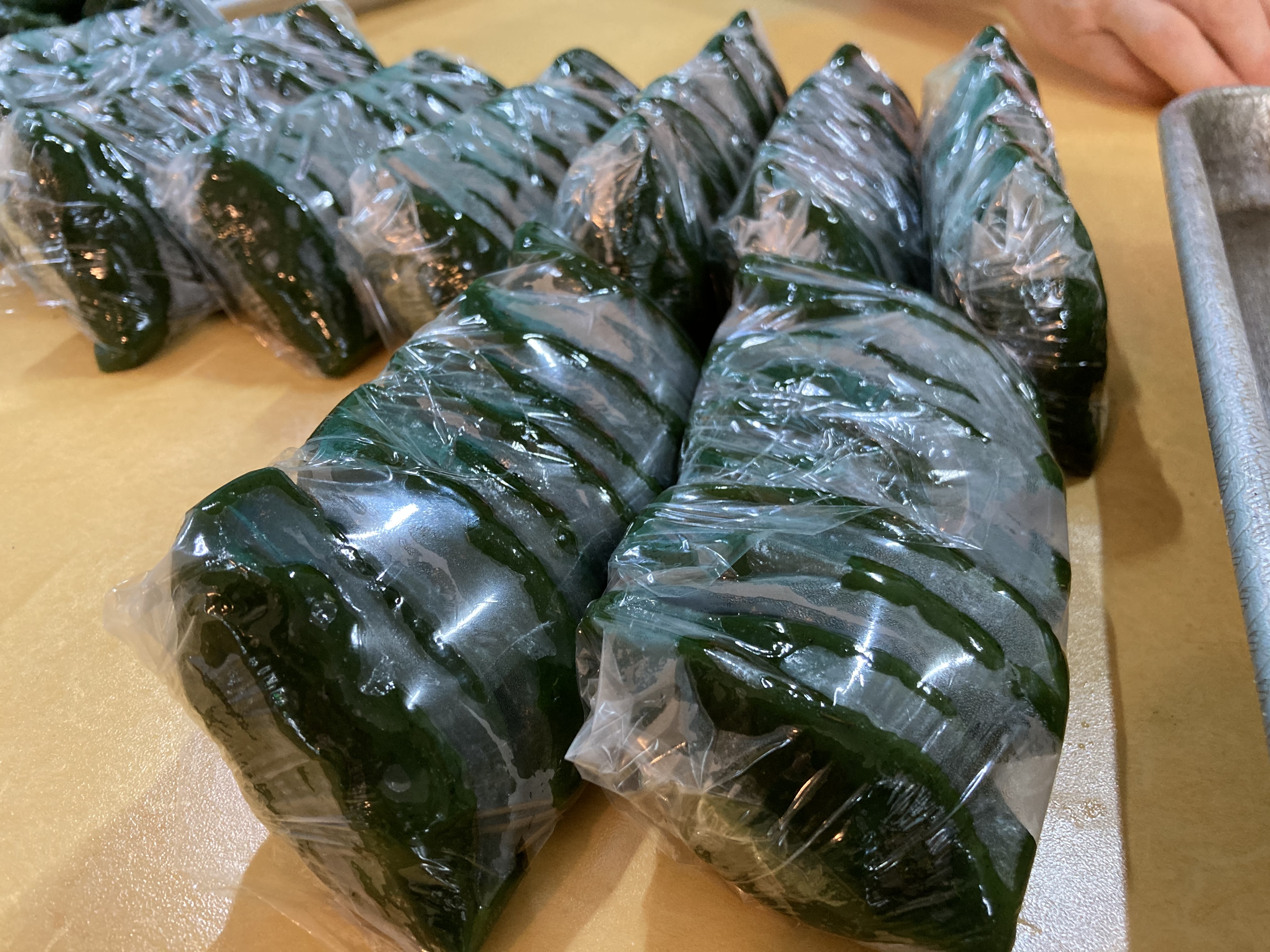 믿음떡사랑 집에서 막 쪄낸 모시송편을 볼 수 있었습니다.