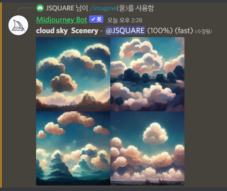 디스코드 기반으로 그림을 그리게 되며, 디스코드를 통해 sing in 을 한뒤 채팅창을 통해서 /imagine 을 입력하면 나타나는 prompt 란에 그리고 싶은 이미지를 영어 텍스트로 입력하면 AI가 거기에 어울리는 그림을 그려준다.