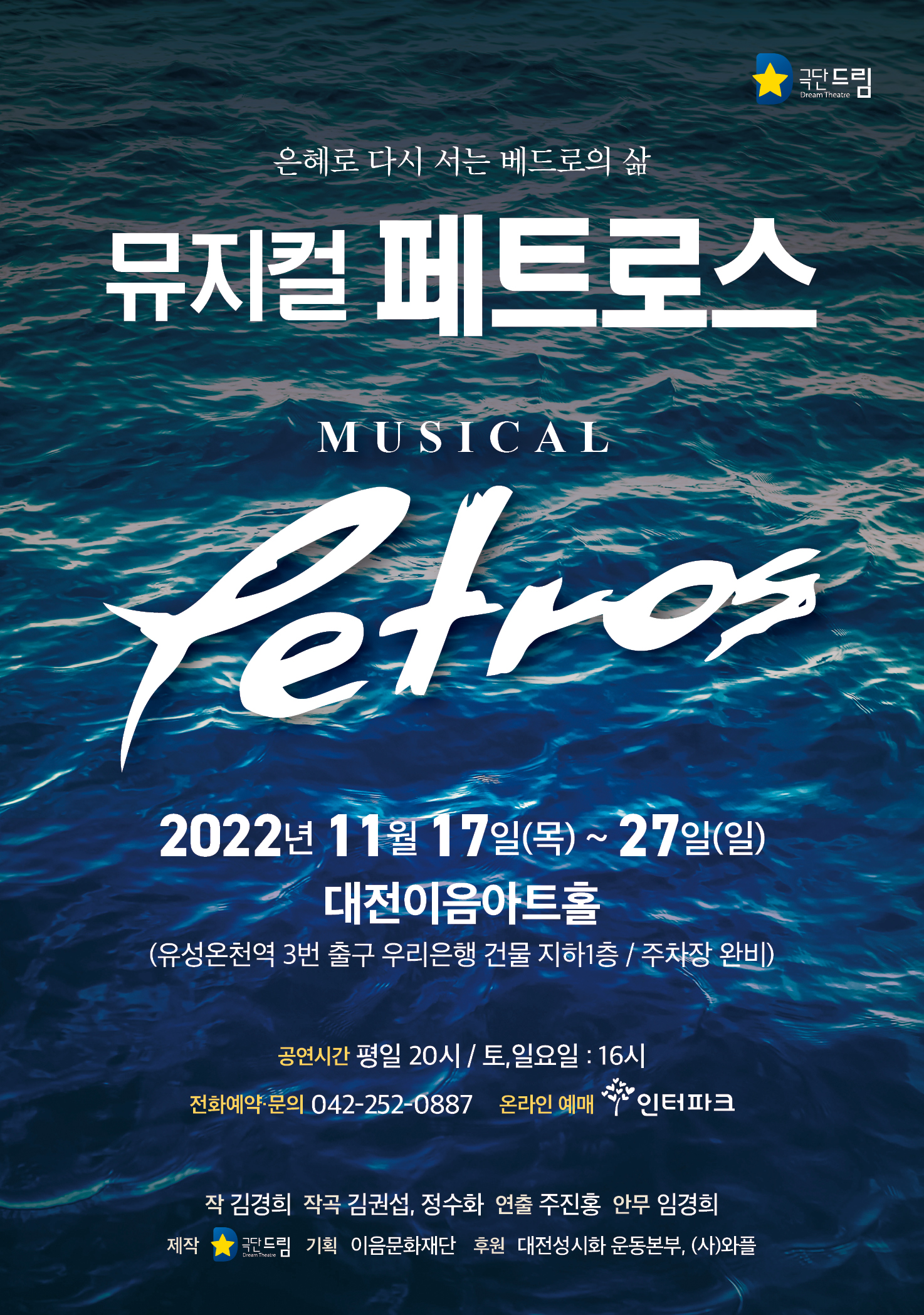 극단드림의 뮤지컬 페트로스가 11월 17일부터 27일까지 대전이음아트홀에서 공연됩니다.