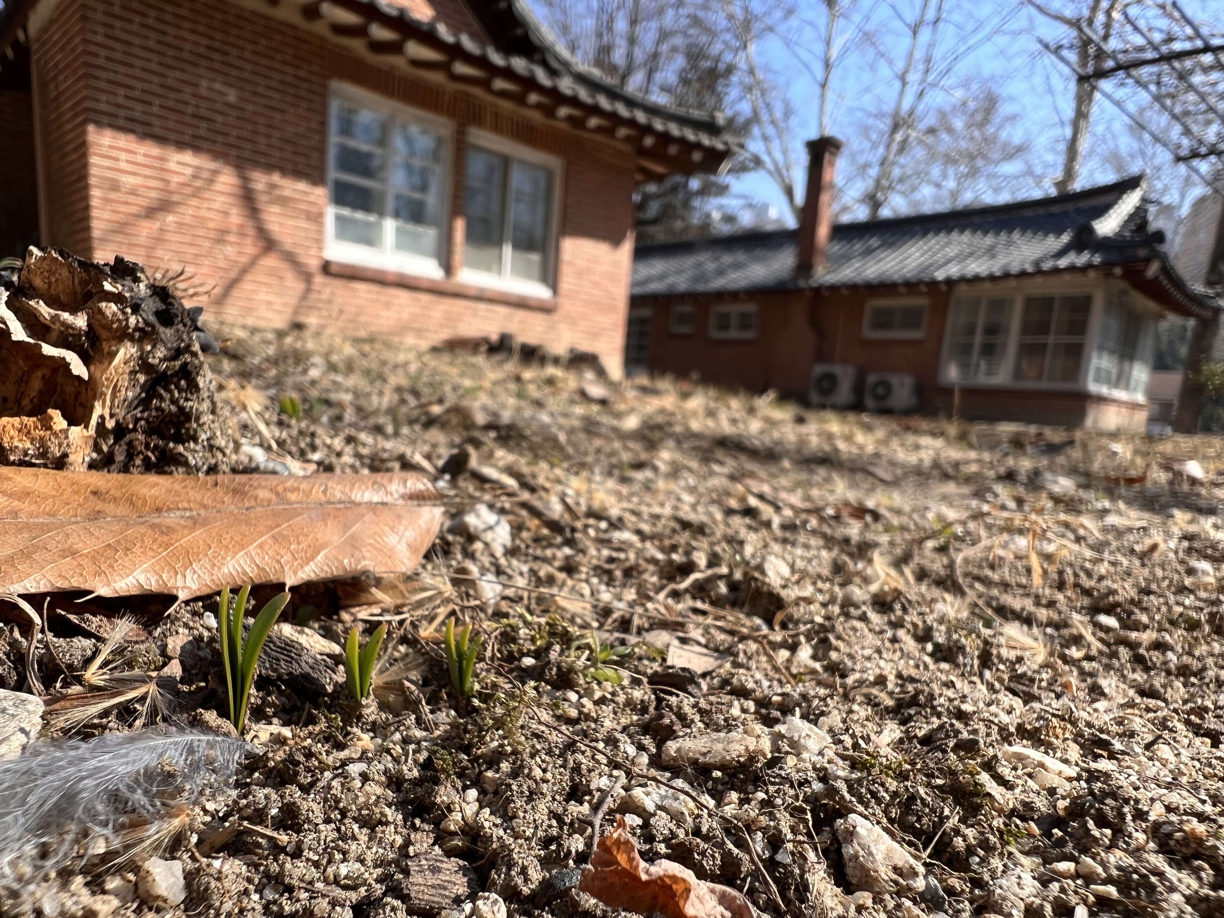 대전 한남대학교의 선교사촌 정원 한편, 수선화가 올해도 그 싹을 드러냈다.