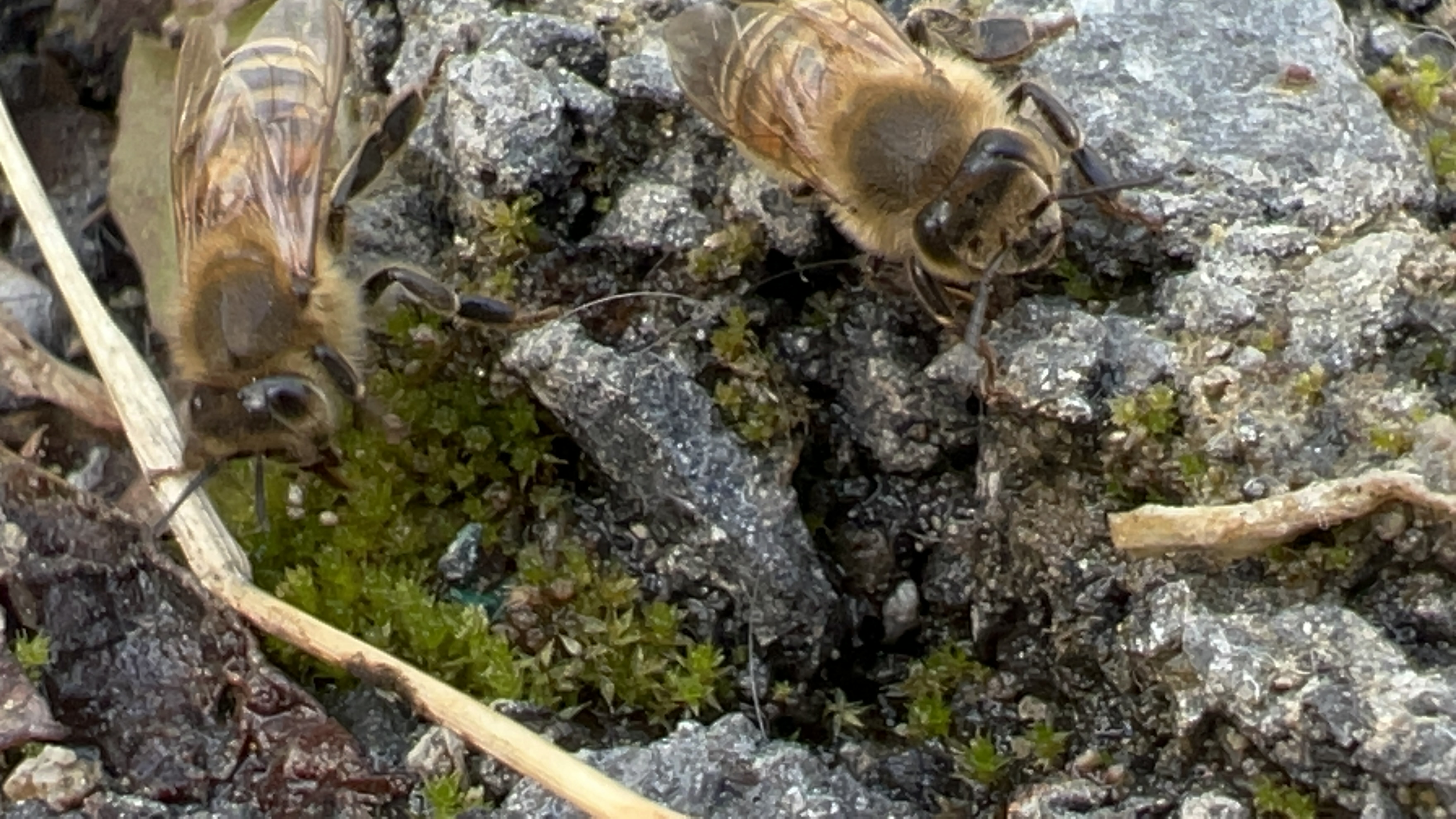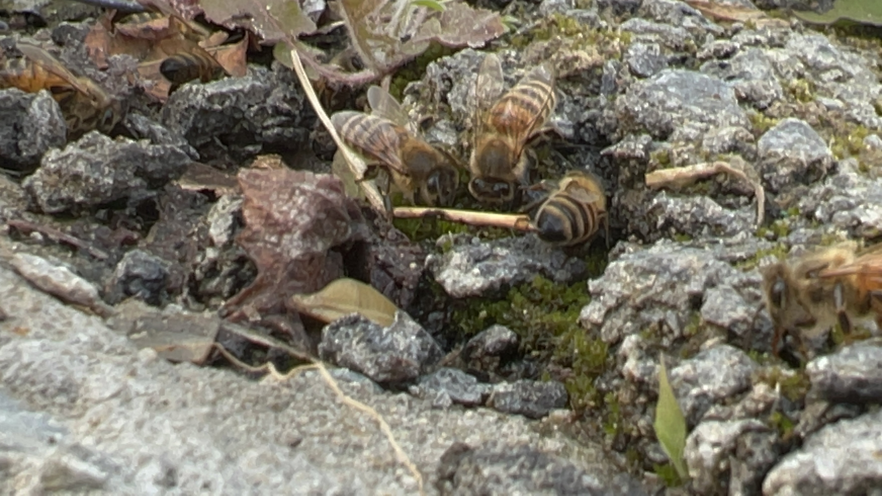 그늘진 곳에 이끼가 낀 이곳은 마침 수분이 필요한 꿀벌들에게는 좋은 장소가 된 것 같다.